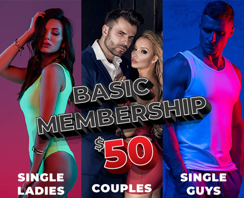 Annual basic membership is mandatory to enter the club and can be only purchased at the door, upon arrival. The “All Access Pass” (Couples Only) is the VIP Couples Membership and is not mandatory to enter the club (Only the basic membership is mandatory), however, this gives couples free entrance and access to all parties and events at the club including Halloween, New Year’s Eve and our Anniversary Bash. The VIP all access pass, can only be used by the members designated on their membership profile. Please note: Single Females and Single Males are not eligible for the VIP All Access Membership.
